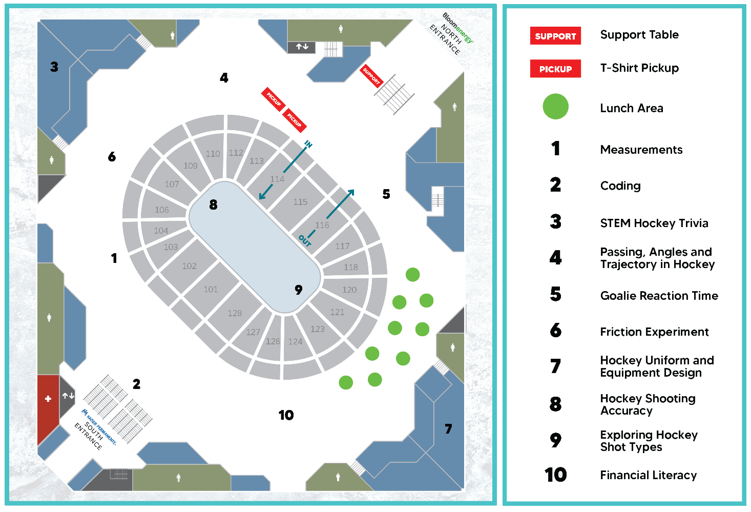Welcome to the San Jose Sharks STEM Day! Below you will find event information which includes the various STEM & hockey stations, map overview, and programming scheduled throughout the day. Go Sharks!